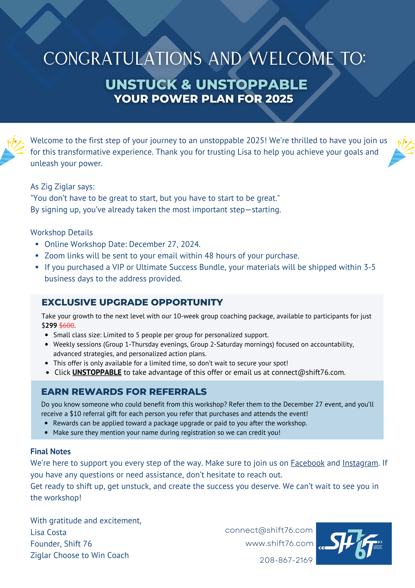 Get the instruction you need to get started on your journey to unstoppable success. The Live Event Only option provides the foundation for creating lasting change—start your transformation today!